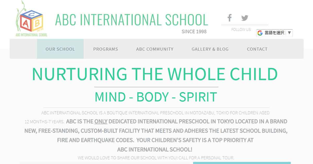 - ABC INTERNATIONAL SCHOOL IS ONE OF TOKYO’S PREMIERE INTERNATIONAL PRESCHOOLS. WE ARE A BOUTIQUE INTERNATIONAL PRESCHOOL IN MOTOAZABU, TOKYO FOR CHILDREN AGED 12 MONTHS-7 YEARS. OUR SMALL, UNIQUE, FLUID LEARNING GROUPS PROVIDE A CATALYST FOR THE DEVELOPMENT OF STRONG, HEALTHY RELATIONSHIPS, SOLID LEARNING SKILLS, PROBLEM SOLVING SKILLS, FRIENDSHIPS AND SELF CONFIDENCE. WE OFFER A PROVEN PRESCHOOL CURRICULUM THAT SUPPORTS THE ACHIEVEMENT OF ACADEMIC AND SOCIAL/EMOTIONAL LEARNING GOALS THROUGH ACTIVE LEARNING, HANDS-ON DISCOVERY AND JOYOUS EXPLORATION! OUR BALANCED CURRICULUM
